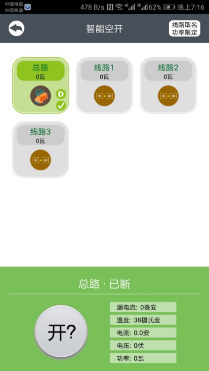 個人手機客戶端個人用戶通過手機號、微信、QQ登陸遠(yuǎn)程設(shè)置、查詢、遙控或定時開關(guān)自動完成漏電保護(hù)功能自檢分線路用電計量,故障實時報警等。