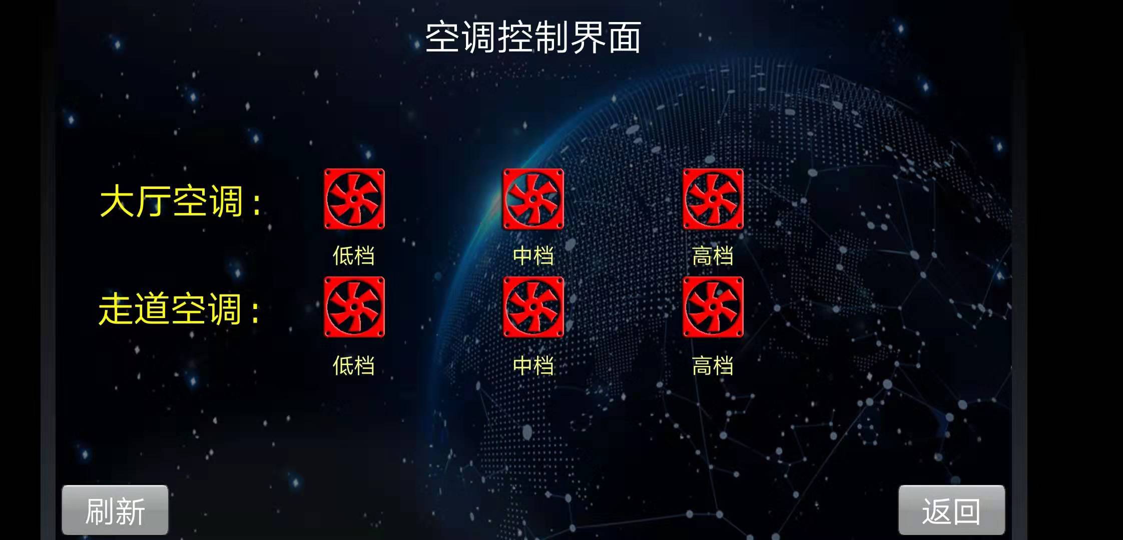 空調(diào):使用了VSU智能照明控制器自帶的互鎖功能,三個回路分別控制空調(diào)的高中低三檔,實現(xiàn)檔位的切換功能。
