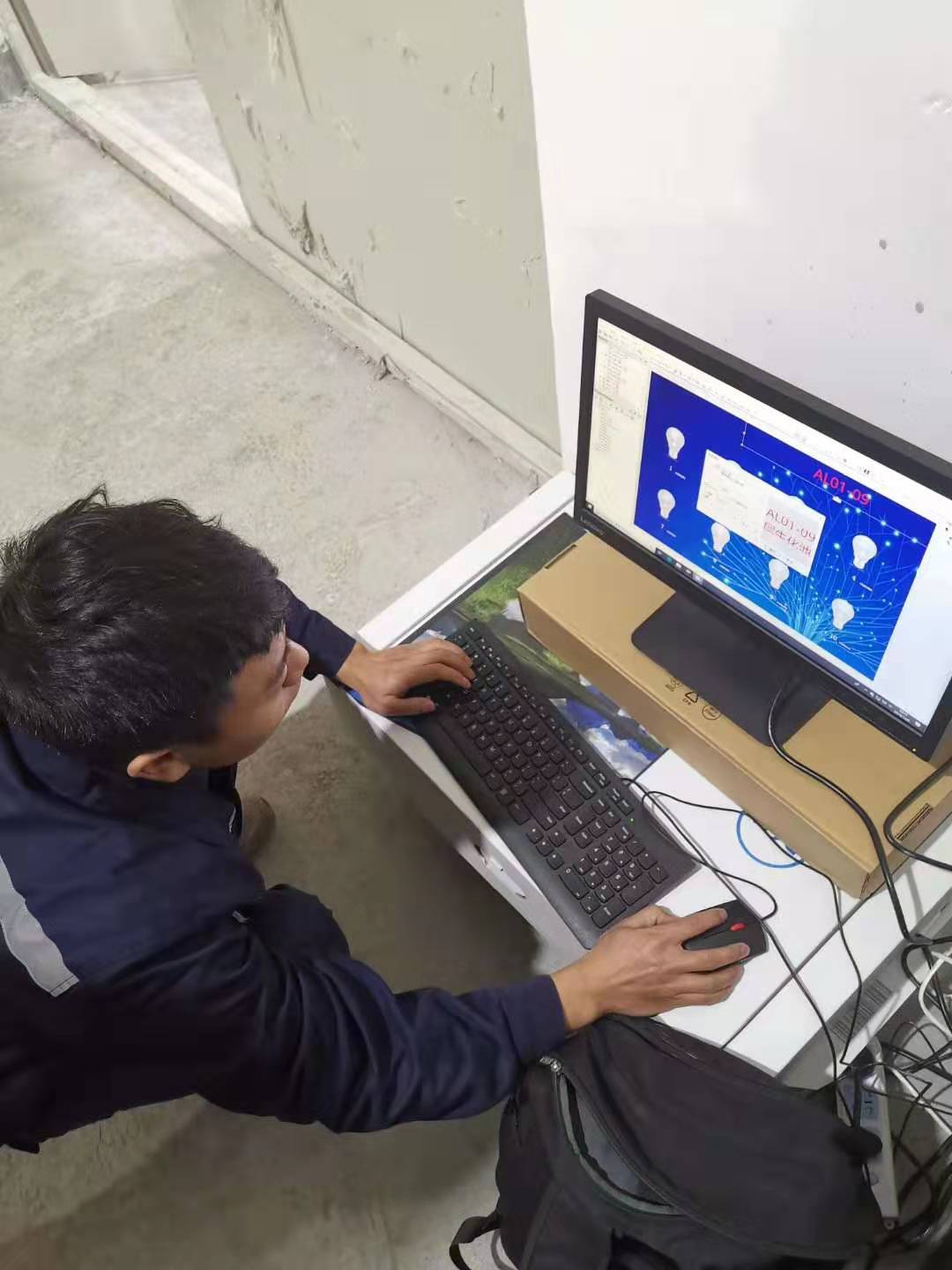 VSU智能照明控制系統(tǒng)可實現(xiàn)對區(qū)域內(nèi)所有燈具開閉,調(diào)光調(diào)色,定時控制,空調(diào)高中低三檔、電動門、電動窗簾開閉,可帶人感、光感,實現(xiàn)全自動化。控制方式可選擇手機、電腦、觸摸屏、面板。根據(jù)客戶需求,VSU為安康江南再生水廠該項目設(shè)計的控制方式為電腦+觸摸屏。下圖為現(xiàn)場測試情況:
