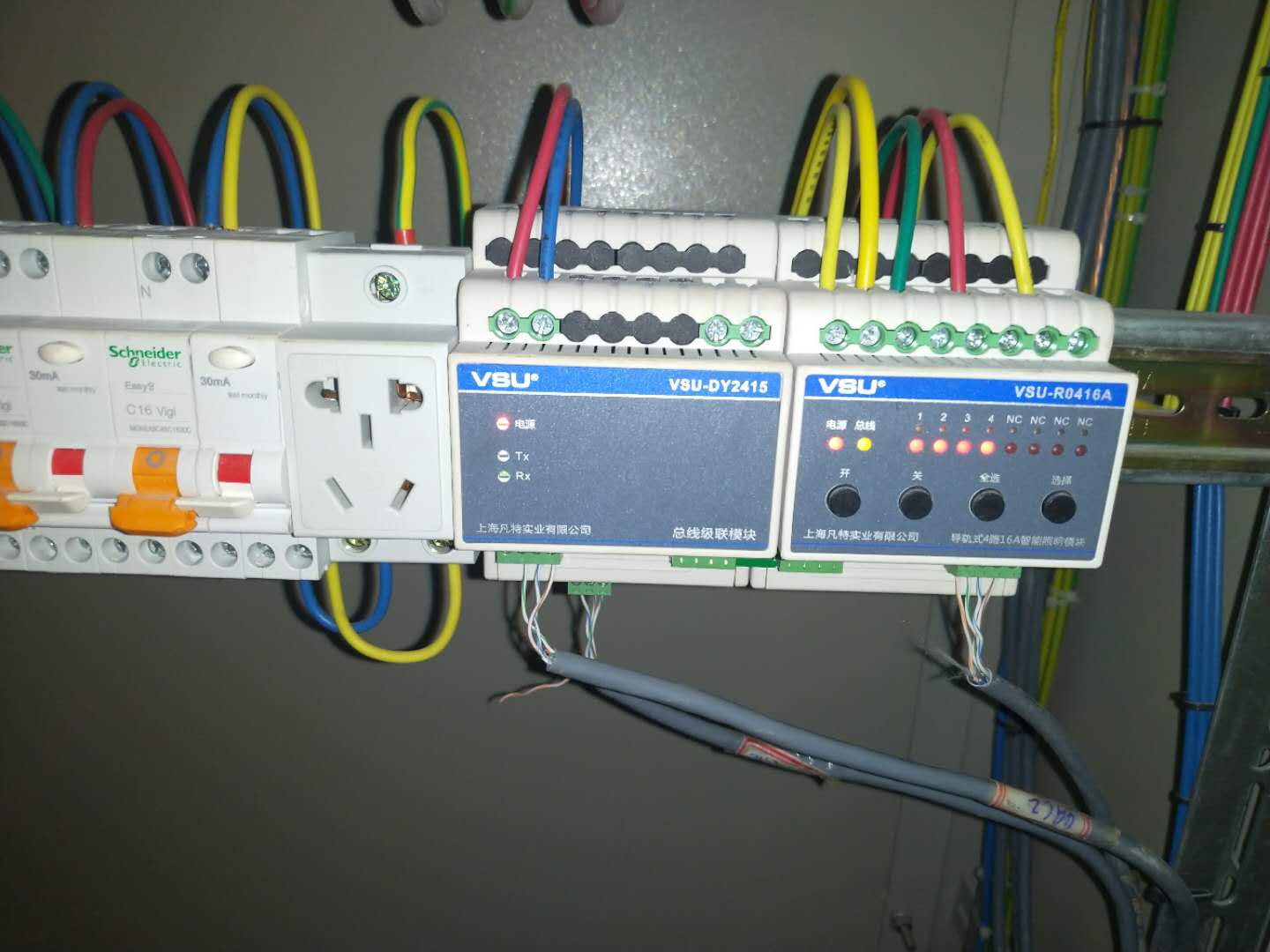 該項(xiàng)目使用如下VSU智能照明總線型系列產(chǎn)品:4路、8路、16路16A智能照明模塊、網(wǎng)關(guān)主機(jī)、級(jí)聯(lián)模塊、6鍵面板。通過現(xiàn)場(chǎng)安裝的智能照明控制面板可對(duì)處理廠內(nèi)所有燈具的開關(guān)控制,并能實(shí)時(shí)觀察到異常燈具的出現(xiàn),盡早安排維修,降低安全隱患。采用VSU智能照明控制系統(tǒng),將普通照明人為的開關(guān)轉(zhuǎn)換成為智能化管理,不僅使管理者能將其高素質(zhì)的管理意識(shí)運(yùn)用于照明控制系統(tǒng)中去,而且同時(shí)能很大程度上減少商務(wù)大廈的運(yùn)行維護(hù)費(fèi)用。