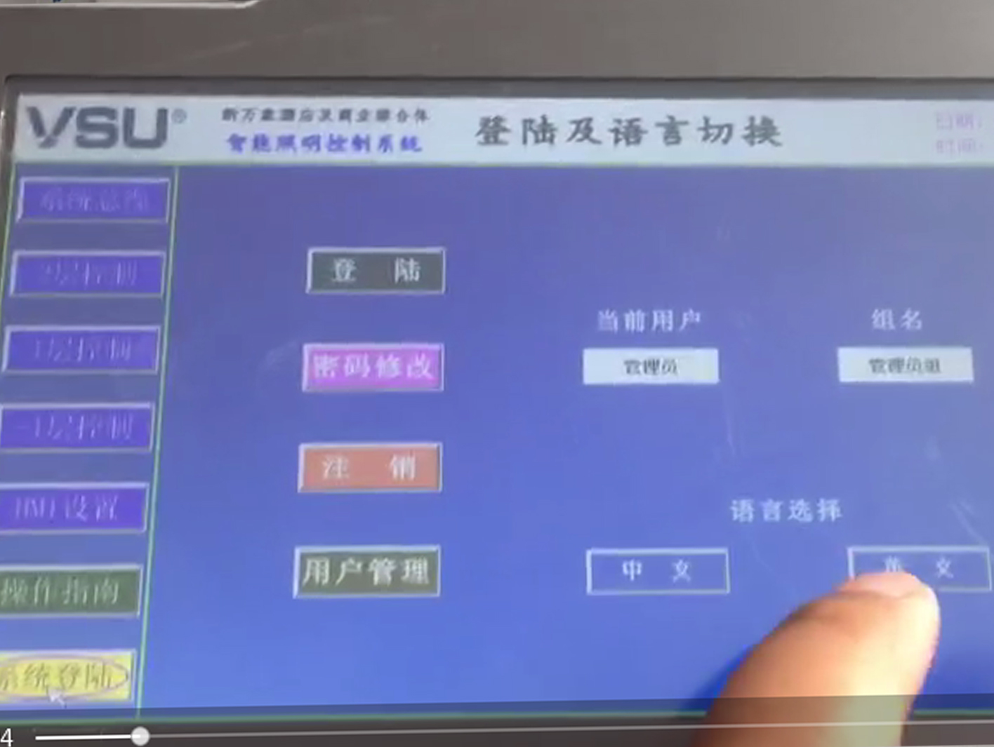 上圖為項目現(xiàn)場內(nèi)的電箱圖片,產(chǎn)品采用導軌式安裝,安裝簡單,普通電工即可完成。通過現(xiàn)場的觸摸屏可對控制終端任意操作,語言選擇中文/English,燈具單控全控,遠程操控。并且可以將建筑內(nèi)的燈具開關狀態(tài)了如指掌,避免疏忽管理,導致電能耗上升情況的發(fā)生。