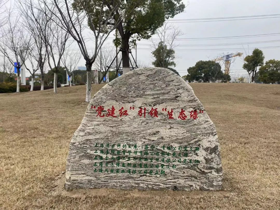 一塊鐫刻著“黨建紅引領(lǐng)生態(tài)綠”以及五個黨支部名字石碑矗立在新栽苗木旁邊,這塊石碑不僅是對我們植樹活動的見證,更是對黨建引領(lǐng)綠色發(fā)展理念的傳承與弘揚(yáng)。它象征著五個黨支部在黨建紅的引領(lǐng)下,攜手并進(jìn),共同書寫綠色發(fā)展的新篇章。