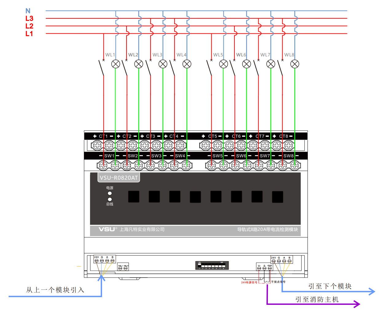 本產(chǎn)品為導(dǎo)軌式安裝,電流檢測(cè)為穿心式接線,含8路智能繼電器,每回路可獨(dú)立控4400W燈具的開(kāi)關(guān),帶強(qiáng)切功能與互鎖功能;檢測(cè)每回路實(shí)際用電電流,通過(guò)實(shí)時(shí)電流與平時(shí)電流對(duì)比,精確排查回路燈具的損壞。 |