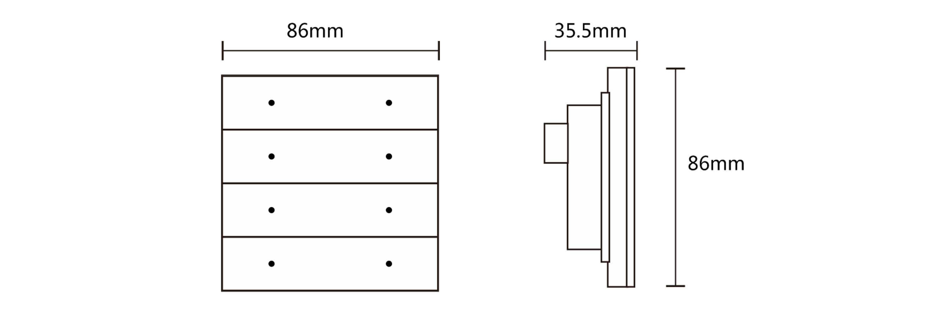 1,標(biāo)準(zhǔn)86底盒安裝,支持多個(gè)面板無(wú)縫級(jí)聯(lián);
