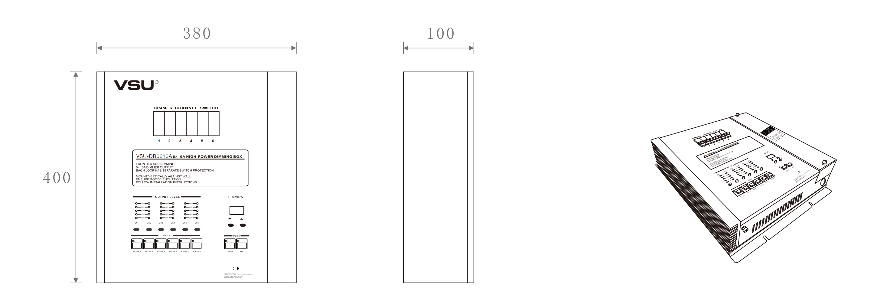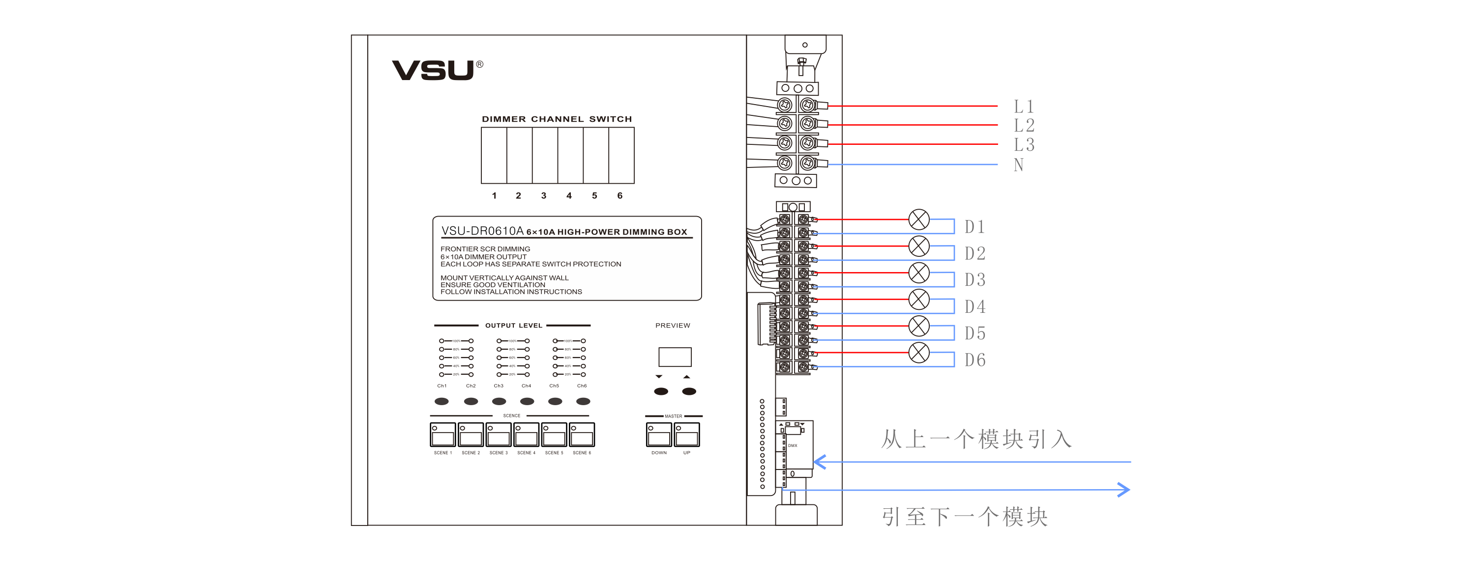 本產(chǎn)品為掛壁式安裝,可控制6路10A(2200W)的射燈、筒燈和白熾燈等的電壓調(diào)光,輸出調(diào)光類型為前沿斬波調(diào)光;機(jī)箱采用輕巧型設(shè)計美觀大方。帶斷路器保護(hù). |